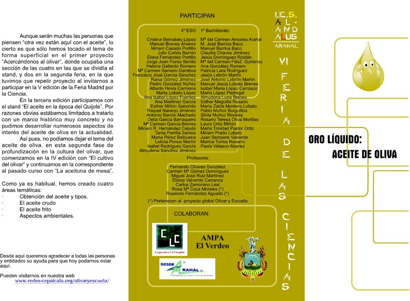 ____En ediciones anteriores hemos participado con un ciclo dedicado al olivar en su conjunto (Acercándonos al olivar). Con este proyecto cerramos el segundo ciclo (Profundizando en la cultura del olivar).
