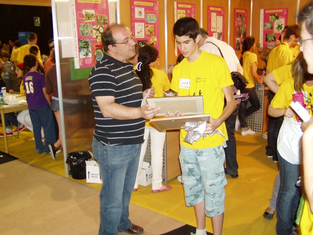 El sábado a mediodía se hizo entrega del premio correspondiente al concurso para la creación del cartel conmemorativo de nuestra participación en la VII Feria de la Ciencia. El ganador ha sido el alumno de 4º de E.S.O. Alberto Campos Moreno. Hizo entrega del premio el director de nuestro centro, D. Miguel Ruiz Martínez.