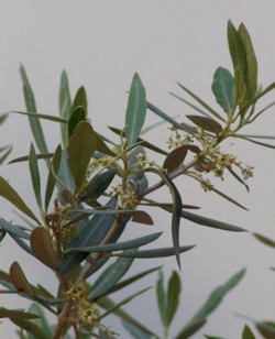 con ramas de olivo o con la ayuda de este bonsai que está en floración.