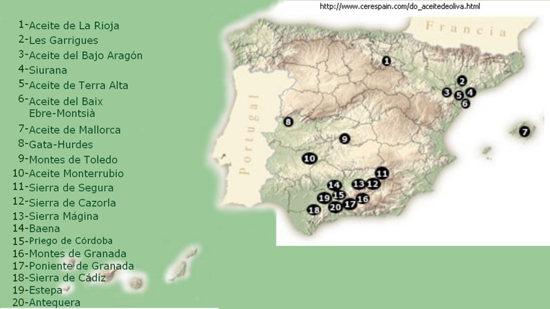 de olivos de diferentes variedades pulsando sobre el enlace. |