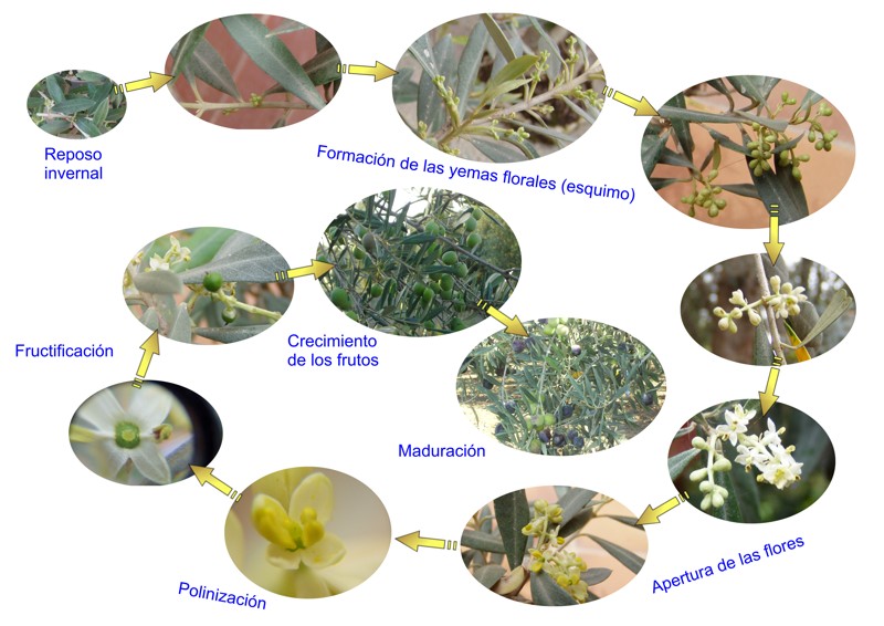____Como todos los árboles, el olivo experimenta a lo largo del año una serie de fases que pueden apreciarse con facilidad. Hemos realizado el seguimiento de diversas variedades para comprobar los cambios que se producen.