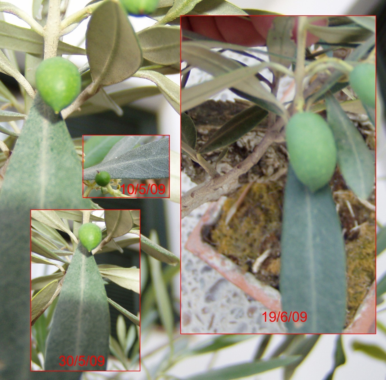 Crecimiento del fruto. Se han escalado las imágenes para mantener el tamaño de la hoja que puede servir de escala. |