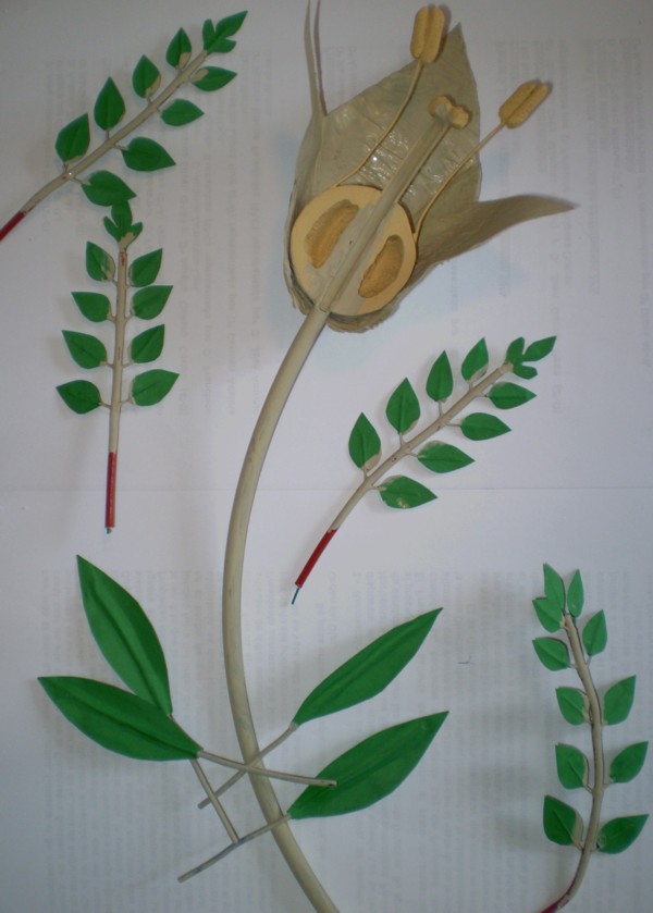 ____Hemos pensado realizar un modelo en poliexpan y otros materiales, para representar las características comunes a las oleáceas. De esta forma nuestros visitantes podrán comprender el motivo de que especies como el jázmin, el olivo y el fresno pertenezcan a la misma familia.