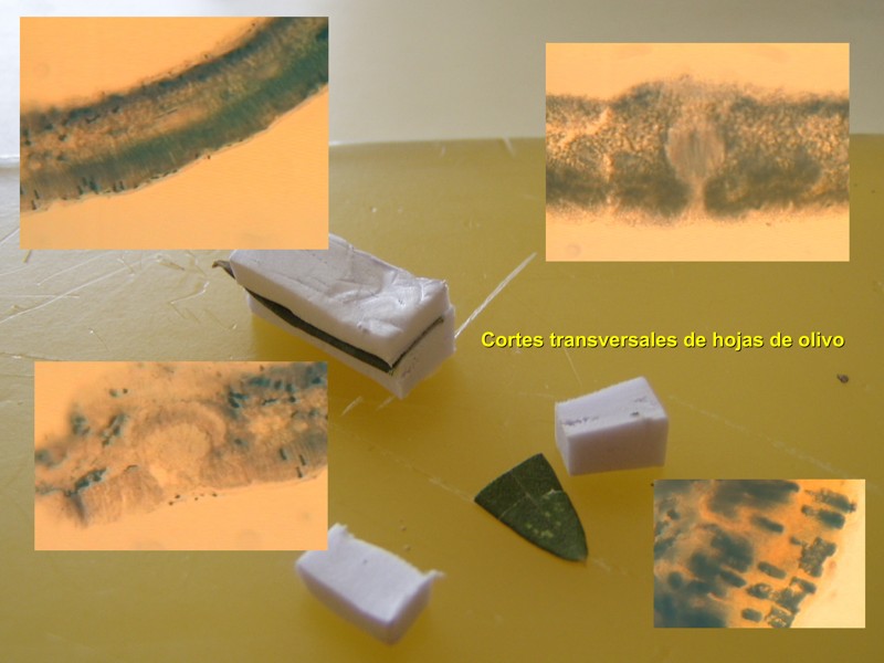 macroscópico y microscópico de órganos del olivo.