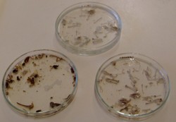 ____Hasta el momento hemos realizado la disección de varias egagrópilas para conocer la técnica y obtener los restos que, una vez limpios, nos servirán para elaborar láminas y preparaciones que podrán ser observadas por los visitantes de nuestro stand. Además hemos realizado una presentación que servirá a nuestros compañeros, y a todas las personas que visiten nuestra página, a saber más sobre nuestro trabajo.