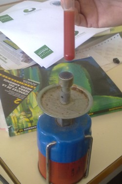- Calentar el líquido. Al principio se puso un poco naranja,