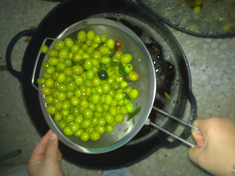 Una vez preparada la lejía la echaremos a las aceitunas. Cada