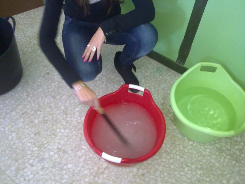 preparado sosa cáustica para echar las aceitunas en ella.