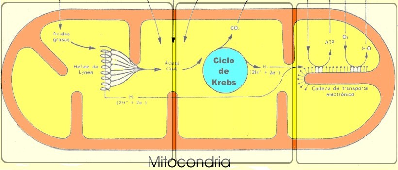 Por último, se entra en un conjunto de reacciones muy complejas en donde se va a conseguir que las moléculas liberen protones y electrones. Por todos estos procesos se van a ganar 36 ATP. |