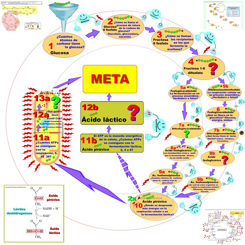 | Casilla 11b | El ATP es la moneda energética de la célula. ¿Cuántos ATPs se consiguen con la fermentación láctica? ¿2, 4 ó 6? |
