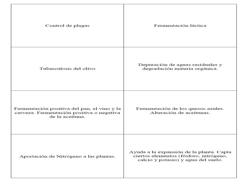 las relaciones que he establecido para las tarjetas entre microorganismos y