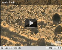 1ª Una de las actividades que llevaremos a la feria será la observación directa de muestras de suelo para observación de bacterias y protozoos en vivo. Estas preparaciones serán observables con un microscopio convencional o con un videomicroscopio. Pulse sobre la imagen para ver el vídeo grabado en nuestro laboratorio. |