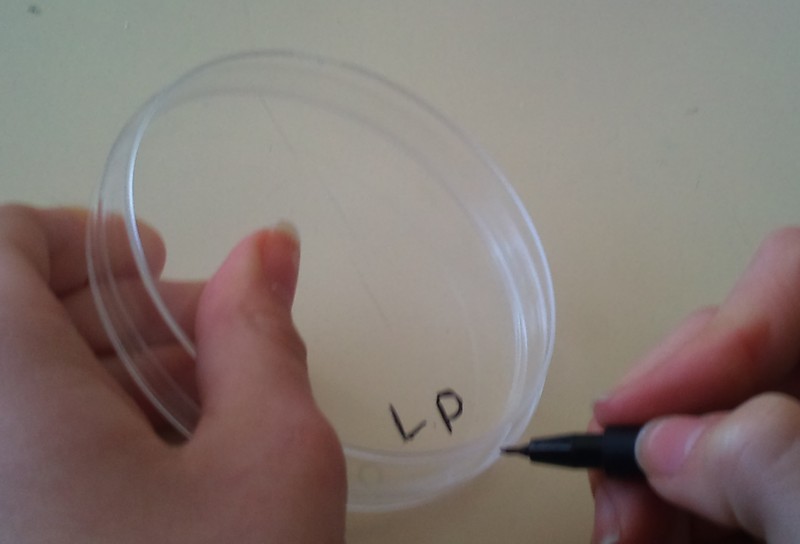 | Comenzamos raspando el haz de una hoja sobre la placa de agar |