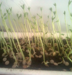 Día 17/3/11 Aspecto de las lentejas sembradas sin micorrizas al cabo de tres días. |
