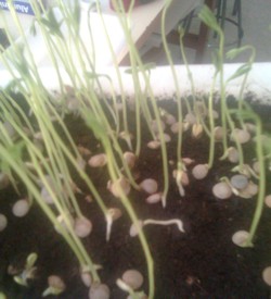 | Estamos repitiendo la experiencia empleando un sustrato más pobre (fibra de coco/turba 3:1, en lugar de turba pura) para ver si se observa alguna diferencia de crecimiento. Emplearemos semillas de soja verde además de las lentejas. | |