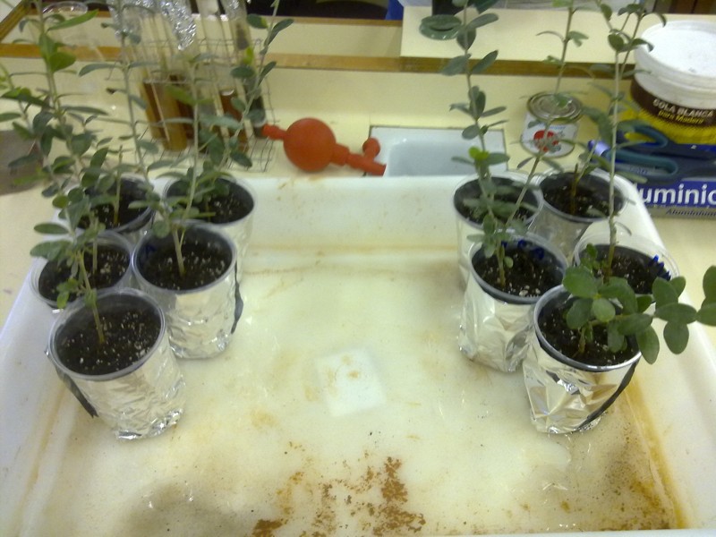 El día 10/3/11 iniciamos la experiencia que marcaremos como "Experimento B. Tras preparar las macetas de forma similar a la descrita para el experimento A, plantaremos los siguientes grupos: BRnC: Arbequina micorizada control numero 1 al 5 A los dos últimos grupos los vamos a someter más adelante