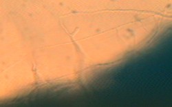 | Observadas al microscopio sólo se aprecia una mayor presencia de pelos radicales en las plantas que han crecido en presecia de micorrizas. | |