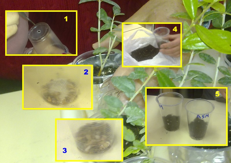 _____Entre los organismos del suelo se encuentran algunas especies de hongos cuyas hijas envuelven a las raíces y favorecen el enraizamiento, son las llamadas micorrizas. Pensamos investigar sobre la acción de las micorrizas en plántulas recién germinadas y en esquejes semileñosos.