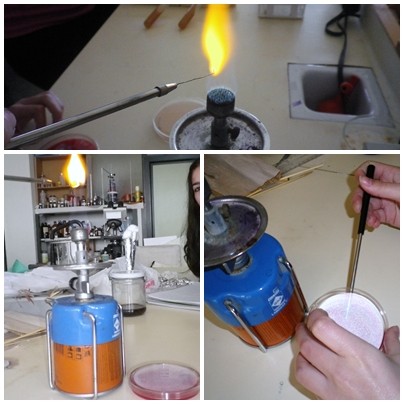 un mechero Bunsen para crear una corriente que evite la posible contaminación. |