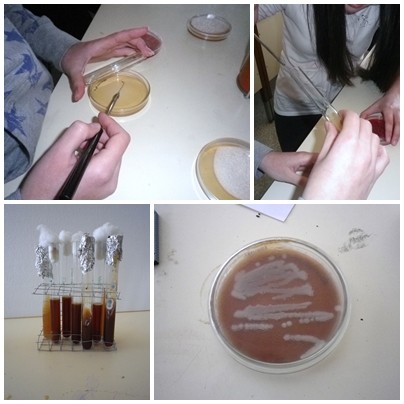 en diferentes placas de Petri y tubos de ensayo. |