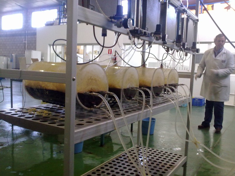 Bacterias del ácido láctico en la fermentación de aceitunas de mesa.